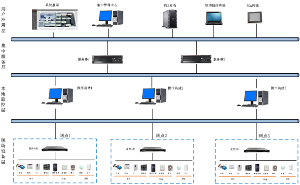 邁世機房集中監控數據運維云平臺系統采用B/S架構,將平臺部署在云平臺上,采用便捷的嵌入式WEB服務方式管理系統。監控內容涵蓋:市電、配電、UPS、蓄電池、溫濕度、精密空調、普通空調、漏水、新風機、煙感、消防、防雷、紅外、門禁、視頻、服務器、路由器、交換機等,實現了多個機房設備集中實時監控、電子地圖查詢、遠程運行管理、故障預警通知、歷史數據查詢、機房無人值守。