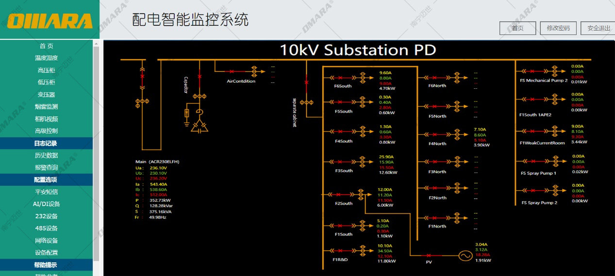 以配電圖方式展示主線和各支線的配電數據和開關狀態。 |